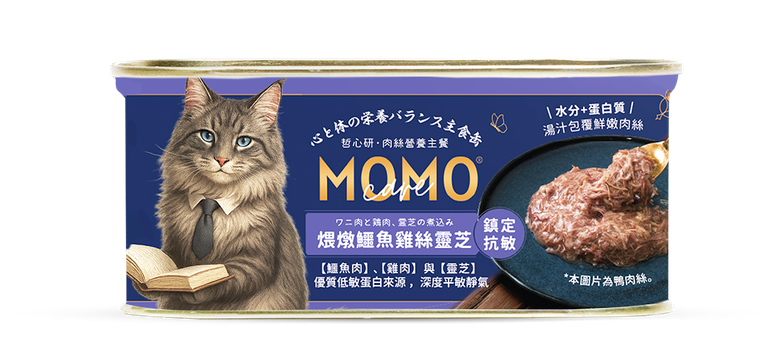 哲心研系列|肉絲營養主餐 MOMOcare 以東方食養理念,結合現代營養科學,為您的愛貓推出哲心研肉絲營養主餐。 我們相信「好情緒來自好腸胃,安定幸福從一餐開始」。哲心研象徵「哲理×心神×研究」,從科學出發,專為情緒理解與營養平衡。嚴選東方天然輔料:蓮子、枸杞、山藥、靈芝等,守護心神安定;堅持清燉無負擔(無香料、無膠、無穀),溫和易消化。 更添加魚水解蛋白、牛磺酸、蛋黃、益生元、維生素礦物質,提供全面營養。給牠穩定的每一天,讓照顧回歸平衡與理性。