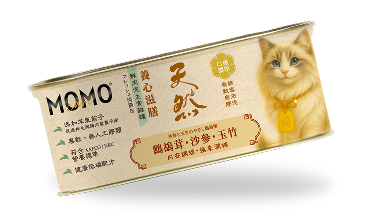 養心滋善系列|鮮肉泥營養主餐 MOMOcare 以東方食養理念,結合現代營養科學,為您的愛貓推出養心滋膳肉泥營養主餐。 我們相信「好情緒來自好腸胃,安定幸福從一餐開始」。養心滋膳象徵「以食養生,柔潤滋養」,結合溫和滋養湯底調理,專為情緒理解與營養平衡。 嚴選東方天然輔料:沙參、玉竹、蟲草花、紅藜、枸杞等,守五臟保血氣;堅持清燉無負擔(無香料、無膠、無穀),溫和易消化。 更添加魚水解蛋白、牛磺酸、蛋黃、益生元、維生素礦物質,提供全面營養。給牠穩定的每一天,讓照顧回歸平衡與理性。